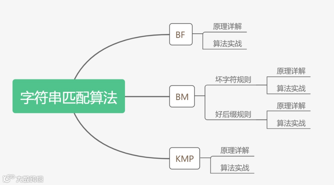 解决上面问题的算法我们称之为字符串匹配算法,今天我们来介绍三种字符串匹配算法,大家记得打卡呀,说不准面试的时候就问到啦。