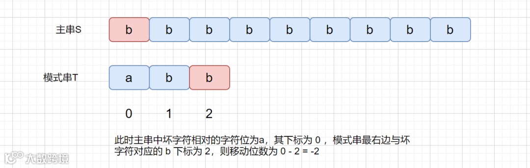 3.如果在模式串尾部就出现不匹配的情况,即不存在好后缀时,则根据坏字符进行移动,这里有挺多文章没有提到,是个需要特别注意的地方,我是在这个论文里找到答案的,感兴趣的同学可以看下。