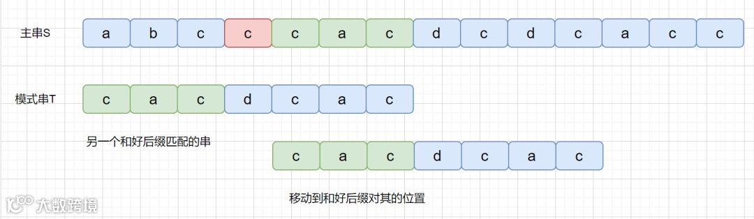 我们的最长公共前后缀如下图,则我们需要这样移动