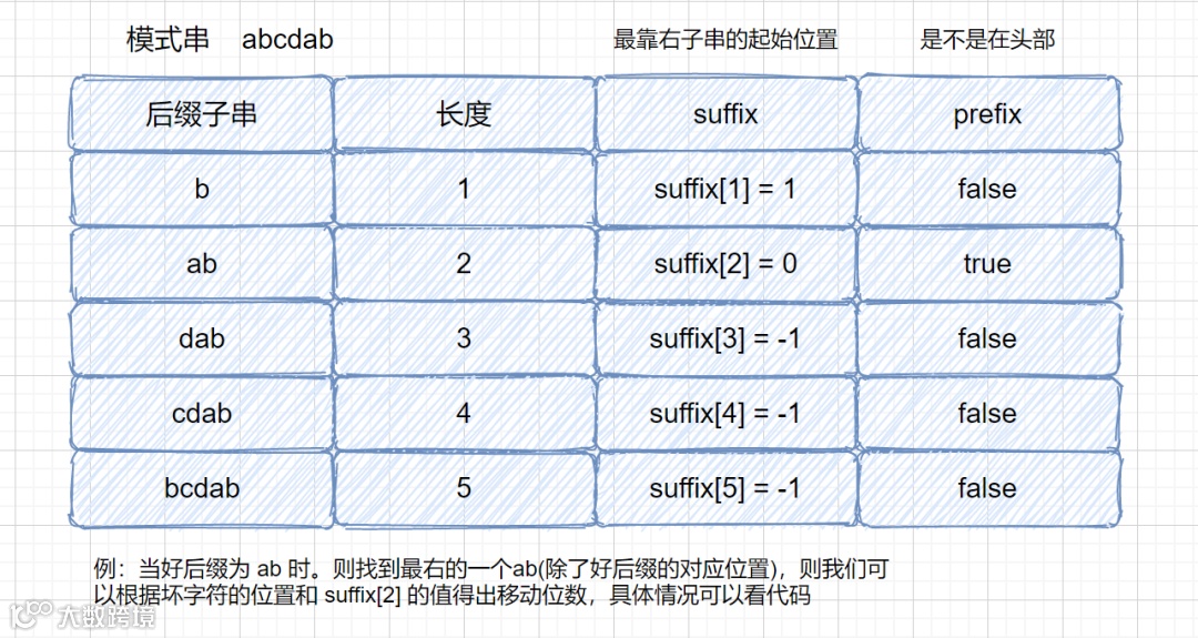 说到这里,坏字符和好后缀规则就算说完了,坏字符很容易理解,我们对好后缀总结一下
