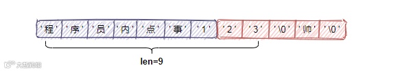 由于这种限制,使得C字符串只能保存文本数据,像音视频、图片等二进制格式的数据是无法存储的。