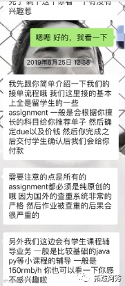 这个作业贩子是我在一个体育论坛上遇到的,当时我刚好在一个留学生作业求助的帖子下「指点江山、激扬文字」,然后这个人就在帖子下回了一句「专业代做留学生作业,质量有保证」,我就去私聊他了,一来二去就“勾搭”上了,当下就加了微信详谈。