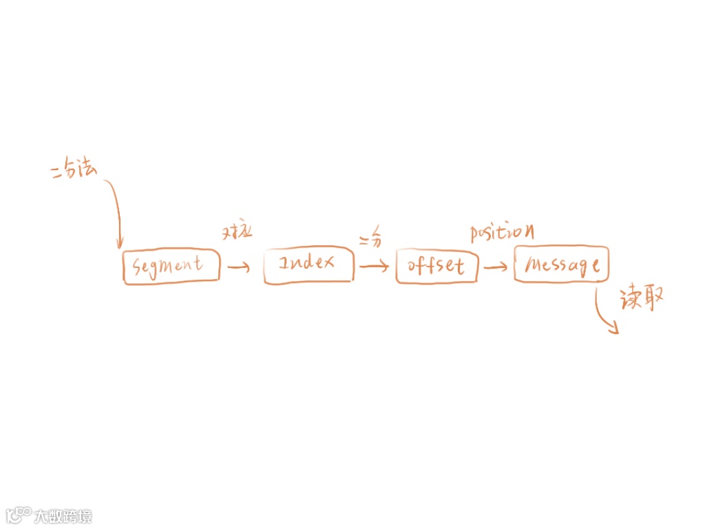 用目标 offset 减去文件名中的 offset 得到消息在这个 segment 中的偏移量。 -
