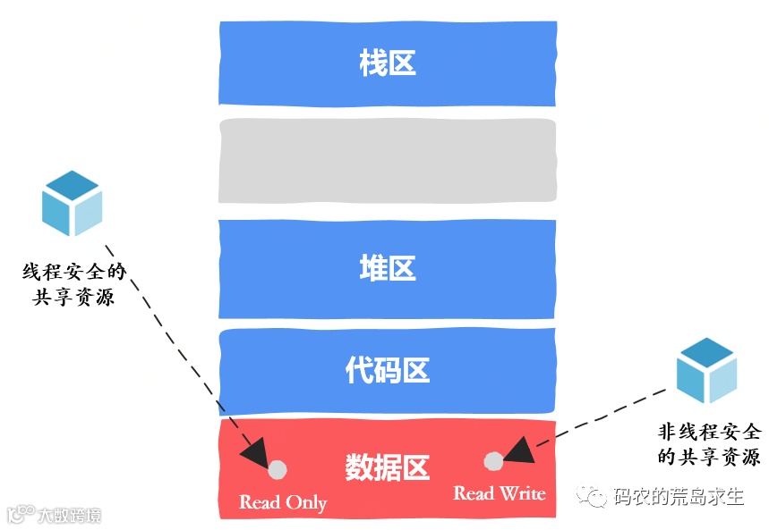 要知道这两个区域是不能被修改的,也就是说这两个区域是只读的,因此多个线程使用是没有问题的。
