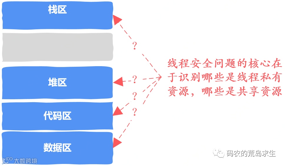 要回答这个问题,我们需要知道我们的代码什么时候呆在自己家里使用私有资源,什么时候去公共场所浪使用公共资源,也就是说你需要识别线程的私有资源和共享资源都有哪些,这是解决线程安全问题的核心所在。