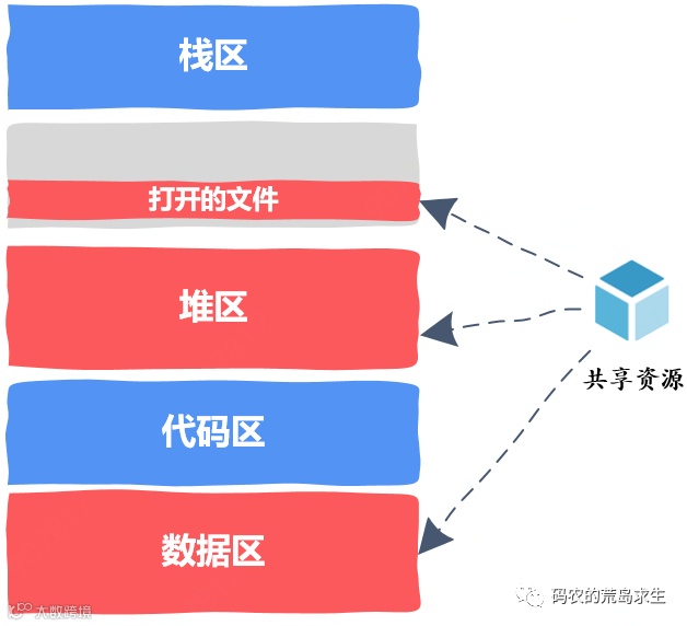 有的同学可能说,等等,在上一篇文章不是说还有代码区和动态链接库吗?