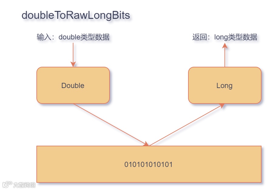 doubleToRawLongBits 函数将 double 类型底层的实际二进制存储数据,用 long 类型强行翻译出来