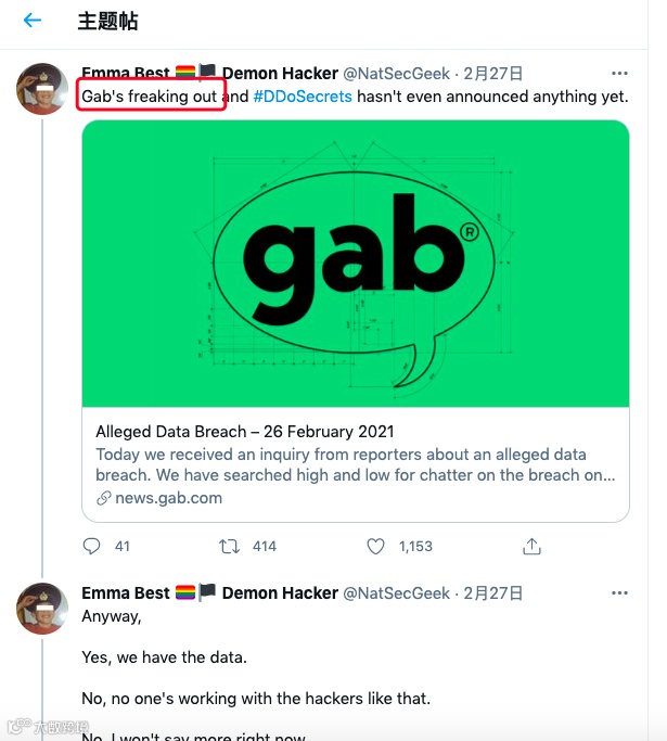黑客发 Twitter 嘲笑 Gab CEO 被吓坏了。