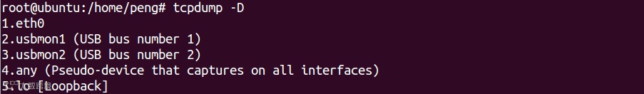 如果不指定网卡,默认tcpdump只会监视第一个网络接口,一般是eth0。