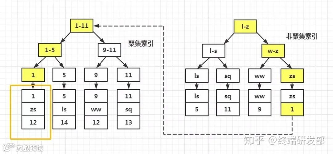 那么,在磁盘上有两棵 B+ 树,即聚集索引和辅助索引(包括单列索引、联合索引),分别保存(a,b,c,d,e,f)和(a,b),如果查询条件中where条件可以通过b列的索引过滤掉一部分记录,查询就会先走辅助索引,如果用户只需要a列和b列的数据,直接通过辅助索引就可以知道用户查询的数据。