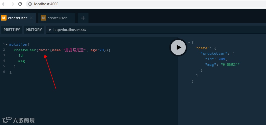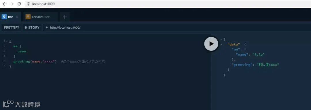 // 3\. 他并不是json,他是graphql的语法, 一定要注意它没有用','