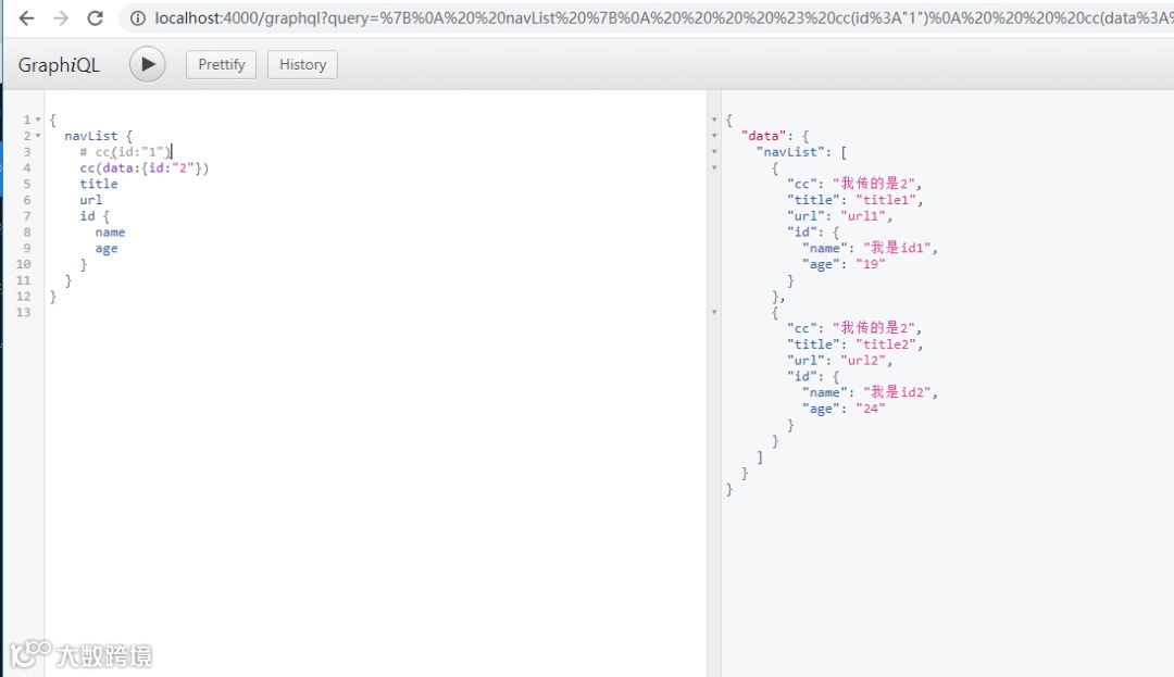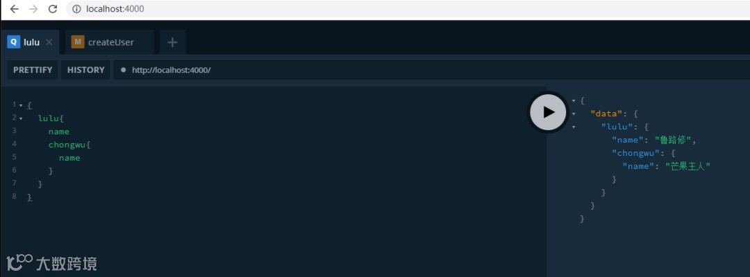 上面的代码直接 node就可以,结果如下: {"data":{"hello":"Hello!","name":"金毛cc"}};