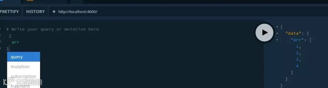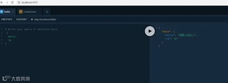 2: const query = '{ hello, name }'做外层{}基本不变, hello的意思就是我要这一层的hello字段, 注意这里用','分割, 之后会把这个','优化掉.