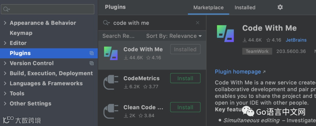 GoLand 2020.3 支持 Code With Me(EAP),这是 JetBrains 的一项新服务,用于协作开发和结对编程。与我一起编写代码使您可以与他人共享您当前在 IDE中 打开的项目,并实时进行协作。