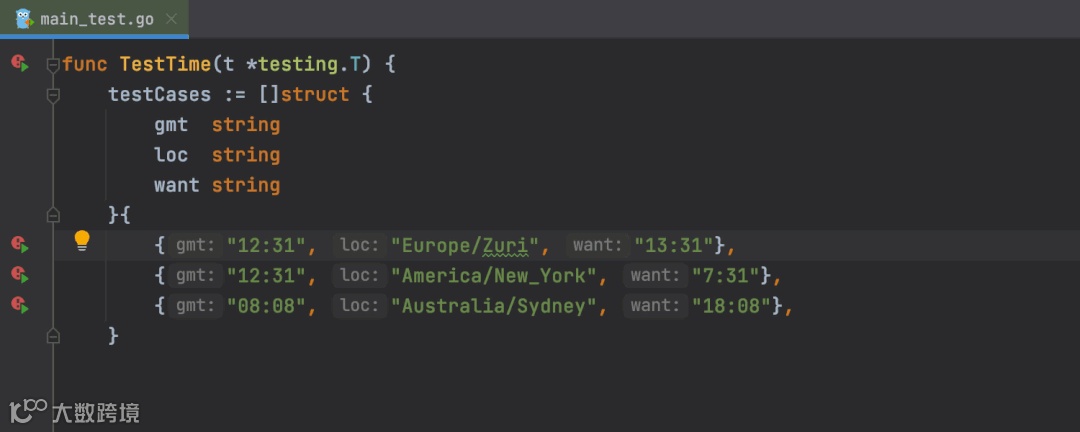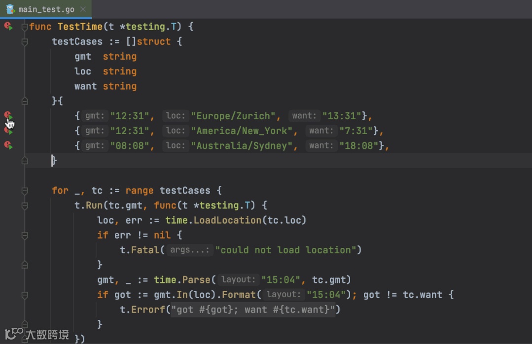 测试数据变量必须是切片,数组或 map。它必须在与调用相同的函数中定义,并且在初始化后不得修改(for 循环中的 range 子句除外)。 -