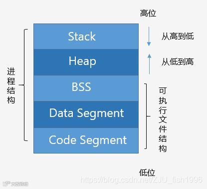 如上图所示,可执行程序的文件包含BSS,Data Segment和Code Segment,当可执行程序载入内存后,系统会保留一些空间,即堆区和栈区。堆区主要是动态分配的内存(默认情况下),而栈区主要是函数以及局部变量等(包括main函数)。一般而言,栈的空间小于堆的空间。