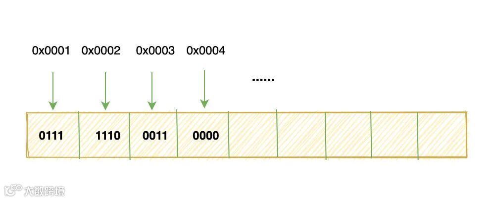 并且将 byte 作为内存寻址的最小单元,也就是给每个 byte 一个编号,这个编号就叫内存的地址。