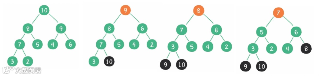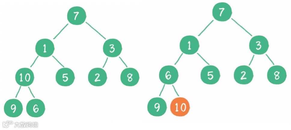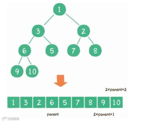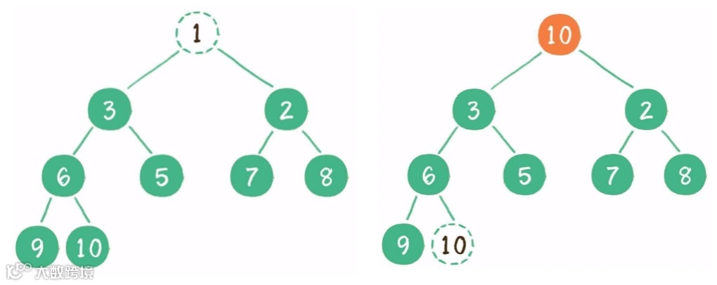 (2)删除:删除头节点,尾节点放到头部,再下沉。