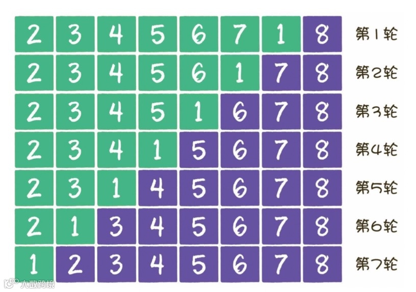 本轮排序中,元素没有交换,则isSorted为true,直接跳出大循环,避免后续无意义的重复。