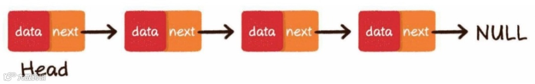 单向链表的每一个节点又包含两部分,一部分是存放数据的变量data,另一部分是指向下一个节点的指针next。
