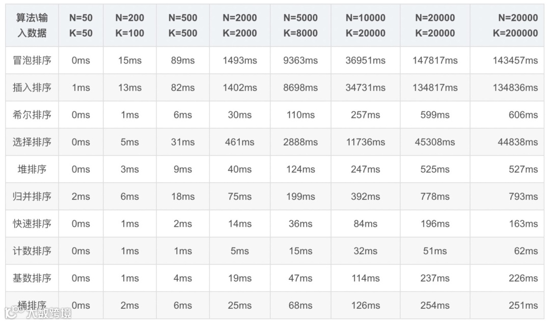 随机生成区间0 ~ K之间的序列,共计N个数字,利用各种算法进行排序,记录排序所需时间。