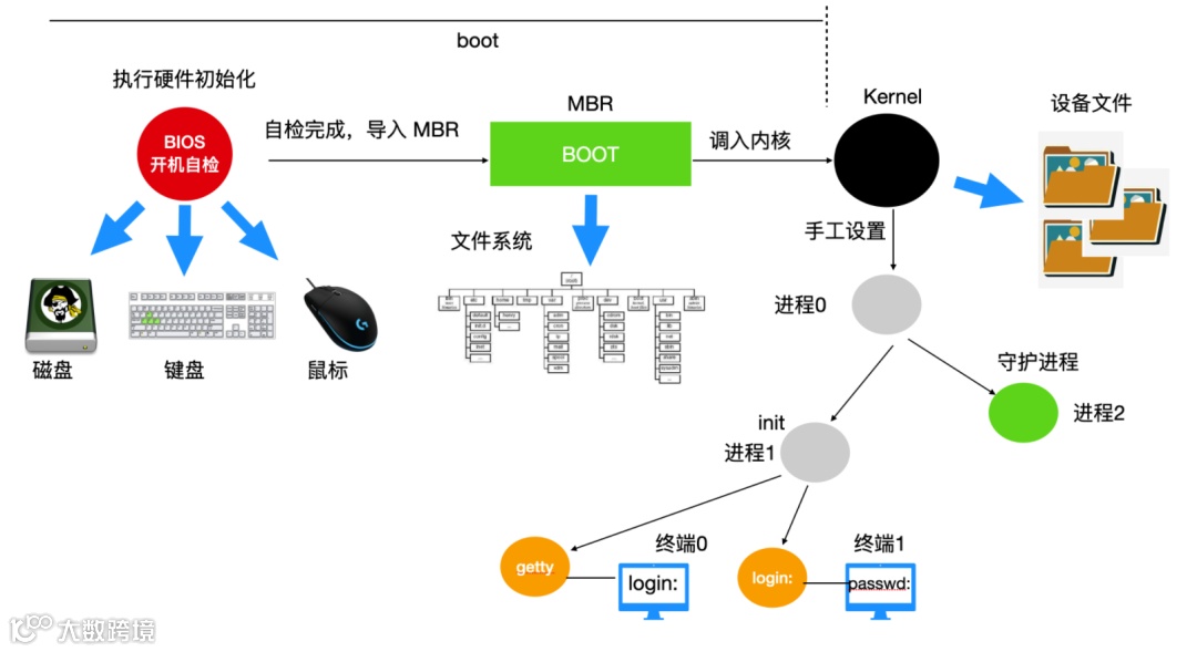 初始化系统(Init System):这是一个引导用户空间并负责控制守护程序的子系统。一旦从引导加载程序移交了初始引导,它就是用于管理引导过程的初始化系统。 -