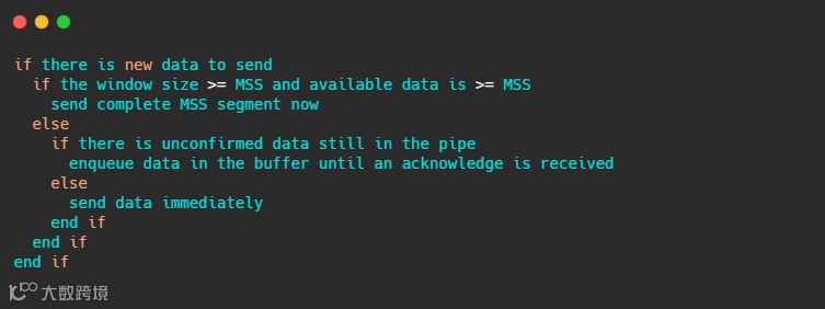 简单的说就是当前能发送的数据和窗口大于等于 MSS 就立即发送,否则再判断一下之前发送的包 ACK 回来没,回来再发,不然就攒数据。