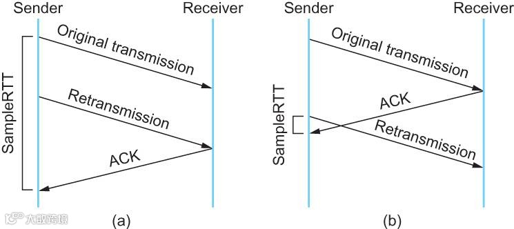 从图中就可以看到,一个时间算长了,一个时间算短了,这有点难,因为你不知道这个 ACK 到底是回复谁的。