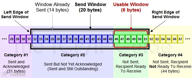 图中的 #1 是已收到 ACK 的数据,#2 是已经发出去但是还没收到 ACK 的数据,#3 就是在窗口内可以发送但是还没发送的数据。#4 就是还不能发送的数据。