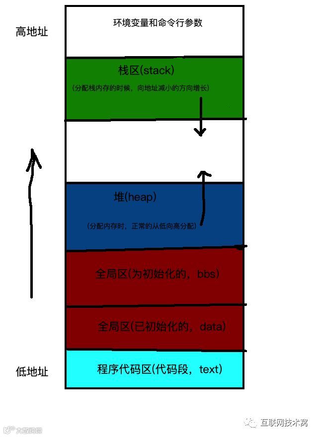 在讲Golang的内存分配之前,让我们先来看看一般程序的内存分布情况: