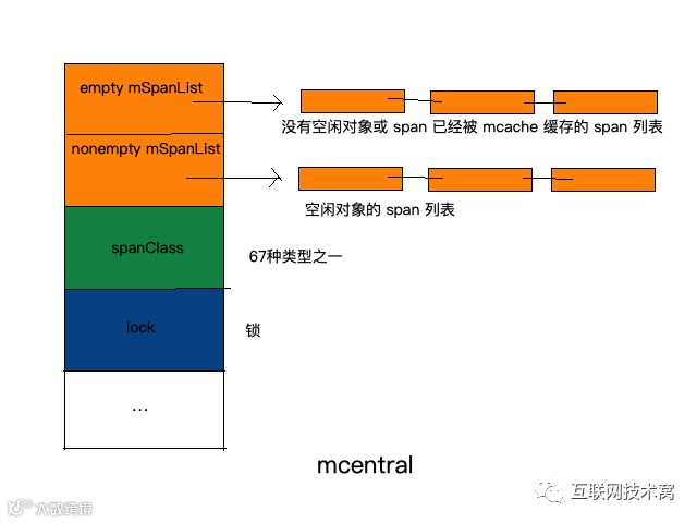 为所有 mcache提供切分好的 mspan。每个 mcentral保存一种特定类型的全局 mspan列表,包括已分配出去的和未分配出去的。