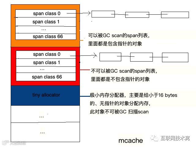 mcache中的span链表分为两组,一组是包含指针类型的对象,另一组是不包含指针类型的对象。为什么分开呢?