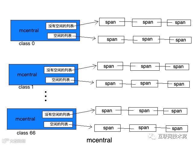 还记得 mspan的67种类型吗?有多少种类型的 mspan就有多少个 mcentral。