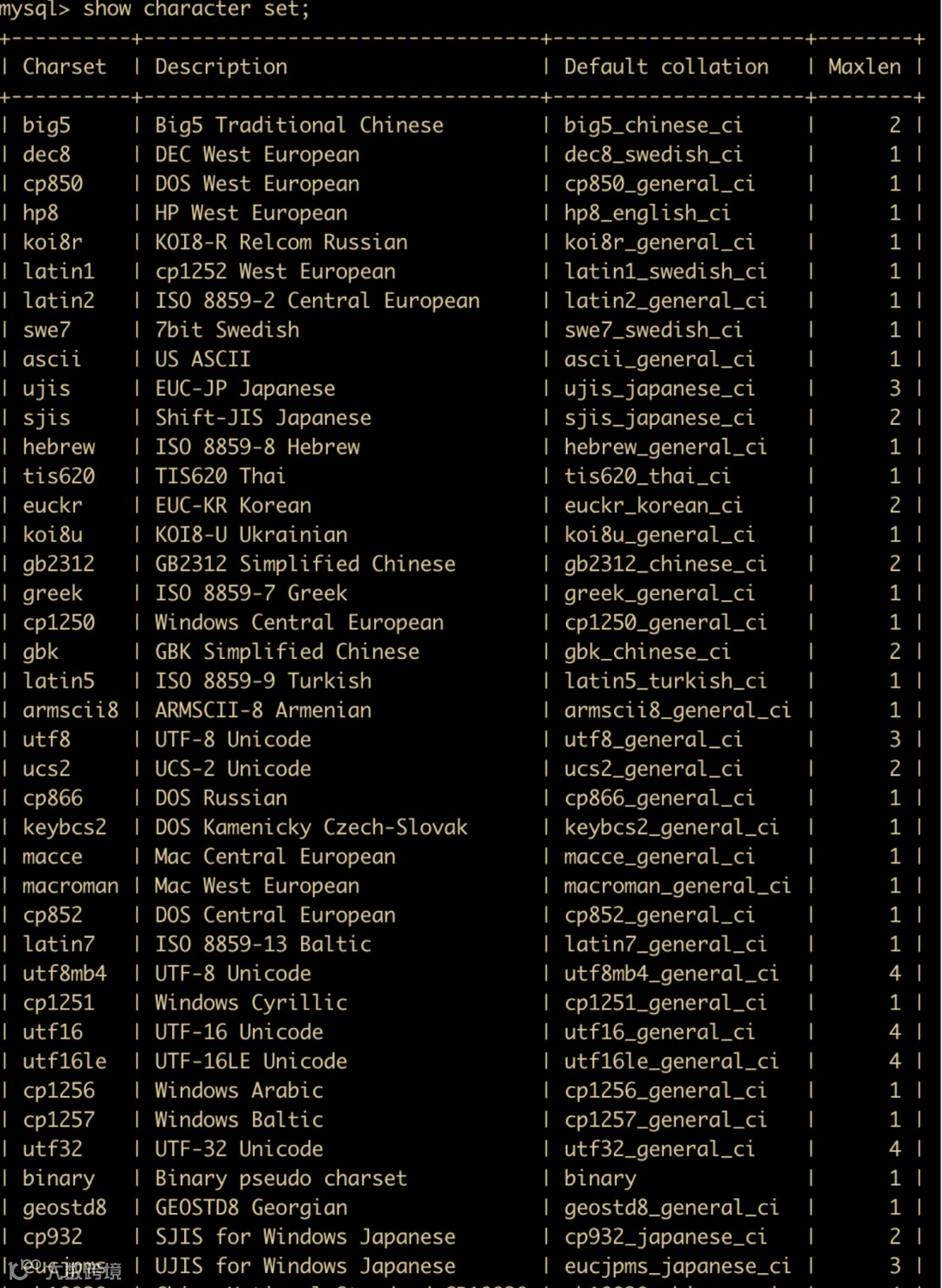 我们使用 show create table 查看一下表的 sql 就知道