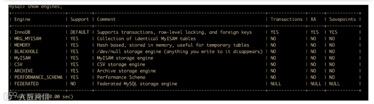 MySQL 默认支持多种存储引擎,来适用不同数据库应用,用户可以根据需要选择合适的存储引擎,下面是 MySQL 支持的存储引擎