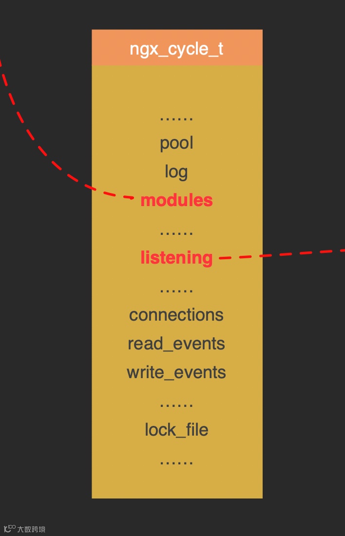 另外一个最重要的初始化由ngx_init_cycle()函数完成,该函数围绕nginx中非常核心的一个全局数据结构ngx_cycle_t展开。