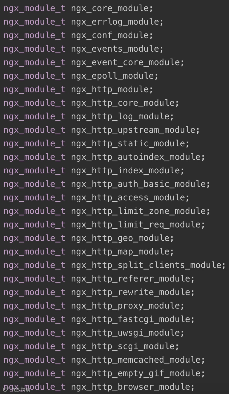 nginx是一个模块化设计的软件,优秀的架构设计使得nginx可以扩展非常多的模块。