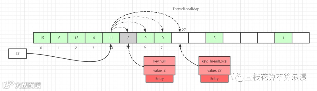 ThreadLocalMap有点类似HashMap的结构,只是HashMap是由数组+链表实现的,而ThreadLocalMap中并没有链表结构。