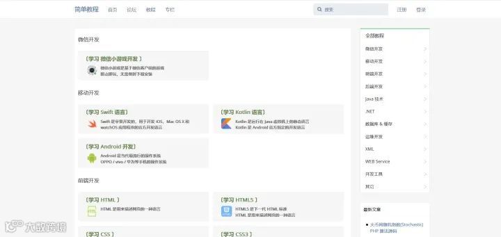 首先列出一些在线教程网站,这些在线教程网站通常都比较适合入门,可以作为开发学习路上的第一个阶梯,也可以作为工作中的在线文档。