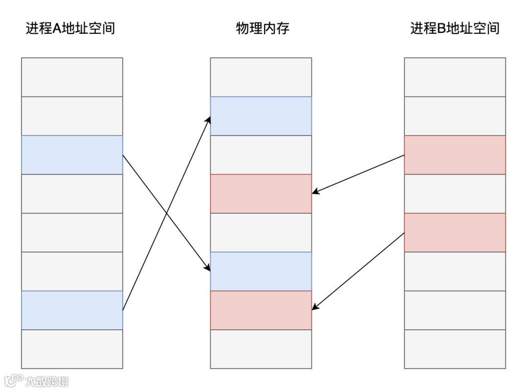 而共享内存这种进程间通信方案的核心在于:如果让同一个物理内存页面映射到两个进程地址空间中,双方不是就可以直接读写,而无需拷贝了吗?