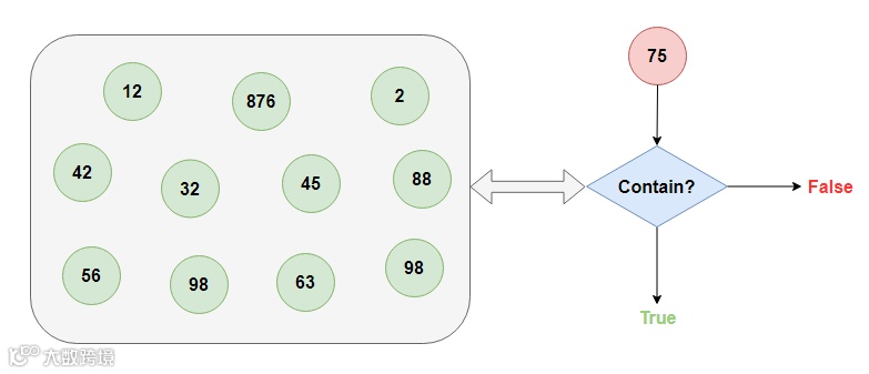 进一步,我们把这个问题抽象出来:如何快速判断一个数据量很大的集合中是否包含我们指定的数据?