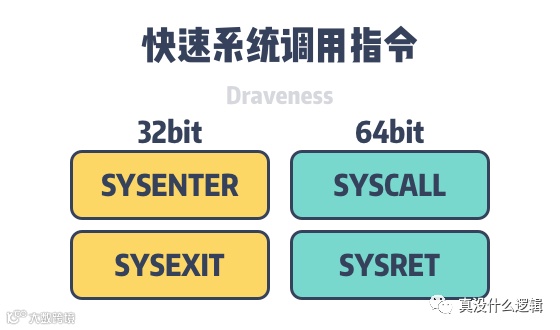 因为使用软件中断实现的系统调用在 Pentium 4 的处理器上表现非常差[^13]。Linux 为了解决这个问题,在较新的版本使用了新的汇编指令 SYSENTER / SYSCALL,它们是 Intel 和 AMD 上用于实现快速系统调用的指令,我们会在 32 位的操作系统上使用 SYSENTER / SYSEXIT,在 64 位的操作系统上使用 SYSCALL / SYSRET: