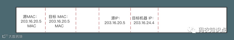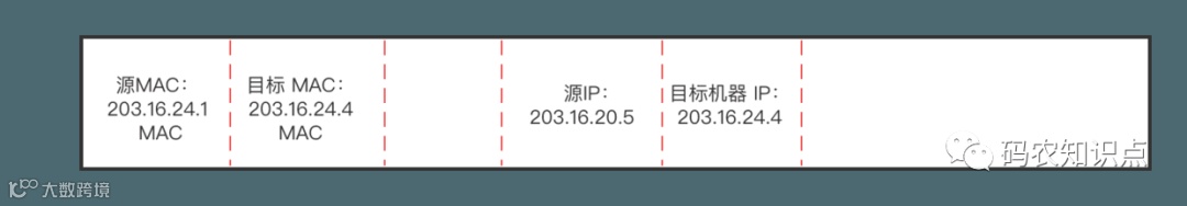 到了网关2,拆包发现目标IP地址是 203.16.24.4/24。查了下自己的路由表,发现要想访问 203.16.24.4/24,要从 203.16.24.1/24 这个口出去。此时3处的数据包结构为: