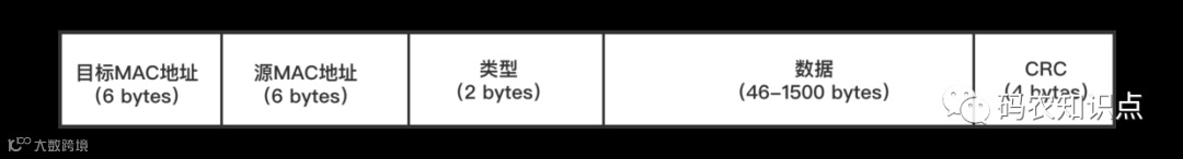 当我们发送数据时,按照应用层 —>数据链路层自上而下封装数据包。当我们接收数据时,按照数据链路层 —>应用层 进行拆包。这里我们再来看一下数据链路层以太网帧的结构:
