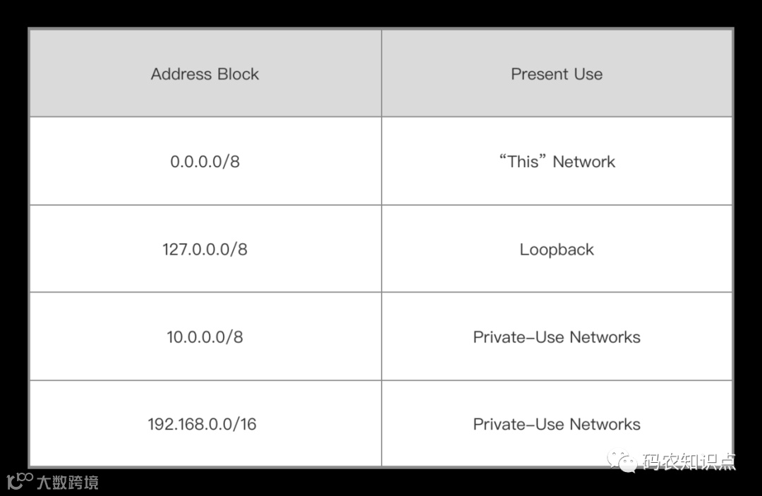 此外,在这五类IP地址基础上还划分出了特殊的IP网段。