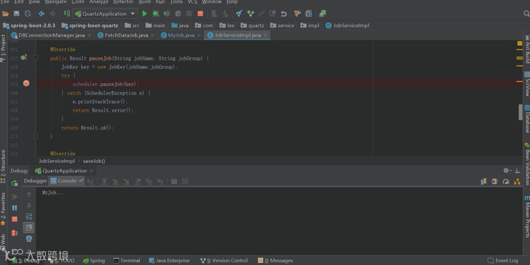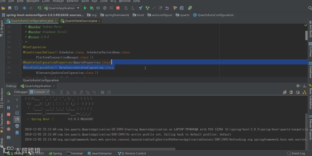 下面我会举例来说明我是如何进行断点追踪的,以 spring-boot-2.0.3 之 quartz 集成,不是你想的那样哦!和 spring-boot-2.0.3之quartz集成,数据源问题,源码探究 为背景来讲,需要搞清楚两个点:springboot是如何向quartz注入数据源的,quartz是如何操作数据库的