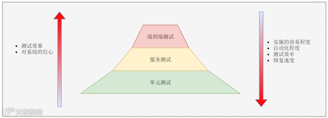 三种测试从上到下实施的容易程度递增,但是测试效果递减。端到端测试最费时费力,但是通过测试后我们对系统最有信心。单元测试最容易实施,效率也最高,但是测试后不能保证整个系统没有问题。