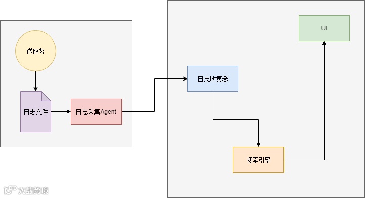 因此,在应用规模变大时,我们需要一个日志的“搜索引擎”。以便于能准确的找到想要的日志。另外,数据源一侧还需要收集日志的组件和展示结果的UI组件: