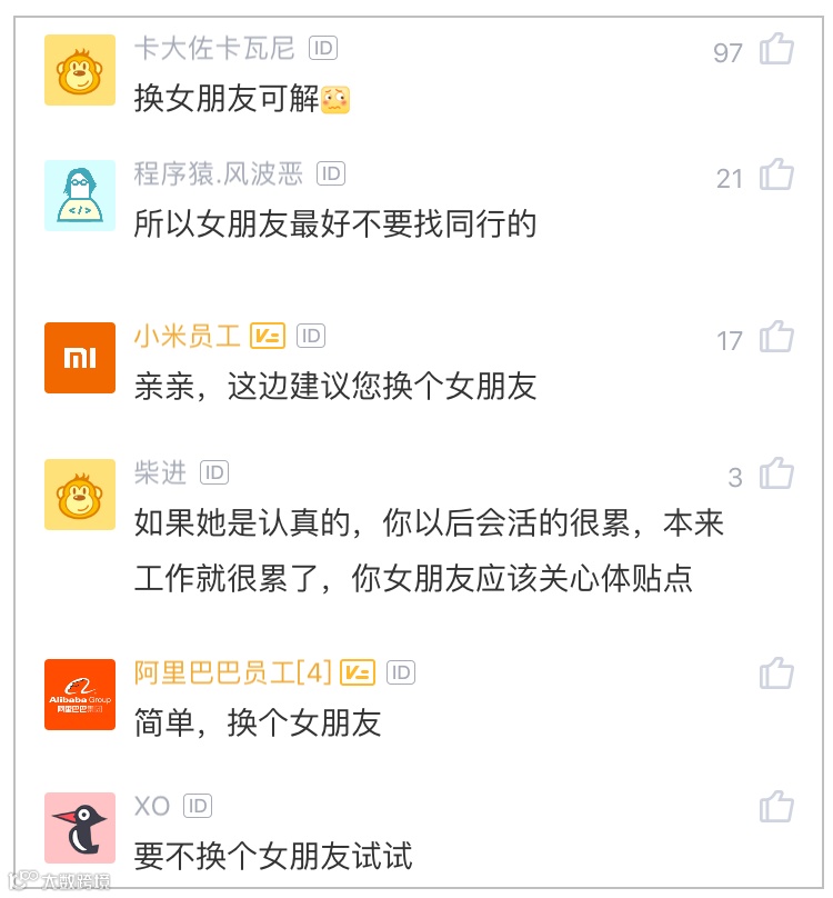 程序猿.风波恶:所以女朋友最好不要找同行的