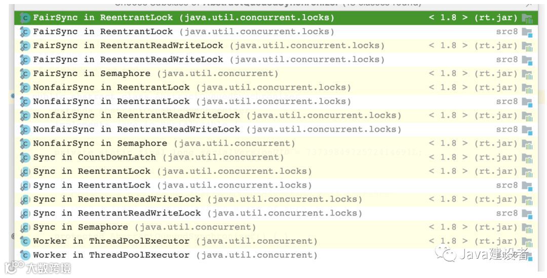 我们可以看到,所有实现了 AQS 的类都位于 JUC 包下,主要有五类:ReentrantLock、ReentrantReadWriteLock、Semaphore、CountDownLatch 和 ThreadPoolExecutor,其中 ReentrantLock、ReentrantReadWriteLock、Semaphore 都可以实现公平锁和非公平锁。